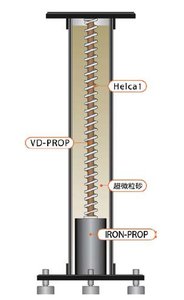 では、どこがどう変わったのか。設置革命といえる「ダイアモンド・フォーメーション(菱形配置)」や、低重心の「ピラミッドバランス構造」など基本技術は継承。形状やサイズ、素材など見た目では大きく変わらないが、ハイブリッド構造の支柱内部(VD-PROP)に、特殊ダンピング溶液を充填した螺旋系アクセサリー「Helca1」を採用したのが最大のポイントだ。