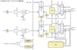 回路構成はブロック図のように、シンプルな回路が特徴である。バランス伝送をアンバランスに変換する入力経路があり、入力はセレクターを必要としないXLR1系統のみ。差動アンプからがパワーアンプ回路になり、差動アンプはFET入力にトランジスターを直列に重ねるカスケード接続を採用。動作の直線性や、正確な動作特性を高めたものと思われる。
