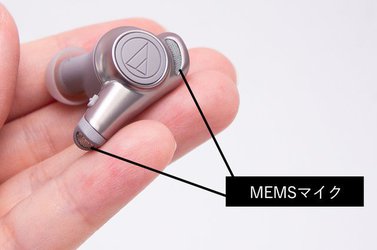 注目すべきは、マイクの活用。ハウジング内部に2基搭載された小型・高性能のMEMSマイクは、アクティブノイズキャンセリングにくわえ、ビームフォーミング技術で話者の口元に向かい指向性を持たせながら収音、その声の帯域を強調することで相手に聞き取りやすくする目的にも使われる。イヤホンといえば基本的に"聴く"ためのデバイスだが、このATH-CKR70TWは"話す"機能にも力点を置いているのだ。