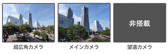 今回のテスト機で唯一となる国内メーカー製スマホ「Xperia 10 II」。もともとXperiaシリーズはカメラ機能にこだわったモデルであり、本機も手頃な価格ながらも、1200万画素のメインカメラ(26mmレンズ相当)、800万画素の超広角カメラ(16mmレンズ相当)、800万画素の望遠カメラ(52mmレンズ相当)を搭載。