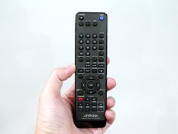 フラットな形状の木製キャビネットにスピーカーとセンターユニットを一体化した。フロント側には英数字とカタカナ表示に対応するLEDディスプレイを設けている。シンプルでインテリアに合わせやすい落ち着いた外観が好印象だ。楽曲の選択などテンキー付きの専用リモコンで操作する。本機のためアプリの追加導入は要らない。ひたすら音楽再生に没入できる。