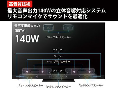 また、「Tuned by Technics」による高音質も自慢。ピュアオーディオ思想のアンプやスピーカーは、映画や音楽を高音質に楽しめるほか、日常の放送も心地よく快適に。さらに新機能として、リモコンに内蔵のマイクを利用し、視聴位置で最良の立体音響を再現する「Space Tune Auto」機能を新搭載。「質」と「体験」にこだわったサウンドもまた「プレミアム」と呼ぶにふさわしいものだ。