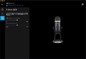 また、Yeti Xには3.5mmステレオミニジャックが搭載されており、ヘッドホンを接続してのモニタリングも可能。ヘッドホン出力のボリュームや、モニタリングのミックスバランスなどもソフトウェア上で設定できる。