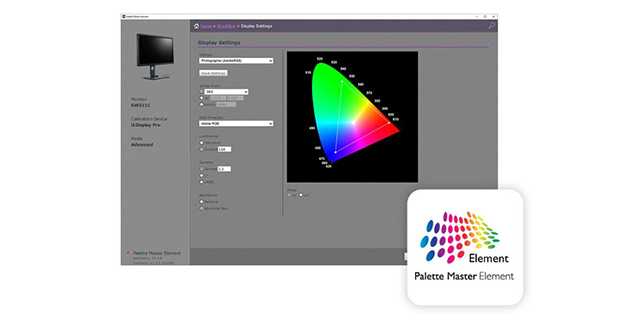 独自開発のハードウェアキャリブレーション用PCソフト「Palette Master Element」(無料)が用意されており、手持ちの対応キャリブレーターと組みわせ、簡単な操作でハードウェアキャリブレーションを行うことが可能だ