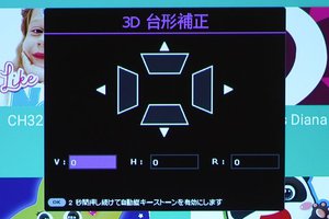 2mで100インチという、大画面を実現しやすい短焦点設計もよく考えられている。シアタールームや天井設置であれば長距離投写できるだろうが、例えばリビングやプライベートルームにゲーム機と並べて設置する、といった用途なら投写距離は短いほうが都合がいい方が多いはずだ。さらに1.2倍ズームレンズに3D台形補正(自動垂直&手動水平、回転画像補正)機能により、設置位置に応じた画面調整も行える。