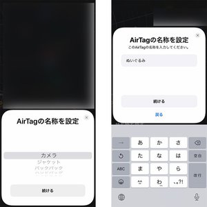 複数のAirTagを区別しながら使い分けられるように1台ずつ名前を付けておこう。ハンドバッグやカメラなどプリセットのほかに、ユーザーが任意に決めた名前も登録できる。