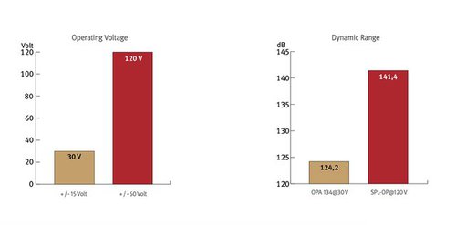 その答えのひとつが基幹技術「120Vテクノロジー」だ。一般的なオペアンプを用いた回路では直流±15V電源、+側/−側併せて30Vの電圧範囲の中で駆動されることが多い。一方で120Vテクノロジーでは最新素子を用いたSPL SUPRA Op-Ampというディスクリート基板モジュールで構成され、直流±60Vという従来の回路構成では考えられないほどの高電圧駆動を行うアナログ回路を用いている。高電圧駆動とすることで処理できる音圧レベルの向上や歪率の大幅な低減に効果を発揮する。