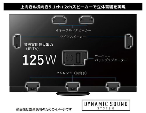 具体的にはトータル125W、5.1ch+2chというスピーカー構成を実現。前向きのフロントスピーカー3基、新設となる横方向の音場を拡張するワイドスピーカー2基、ドルビーアトモスの高さ方向を再現する上向きのイネーブルドスピーカー2基、背面中央部にウーファーを搭載。高級オーディオで知られるテクニクスの開発陣による官能評価とチューニングも行われている。