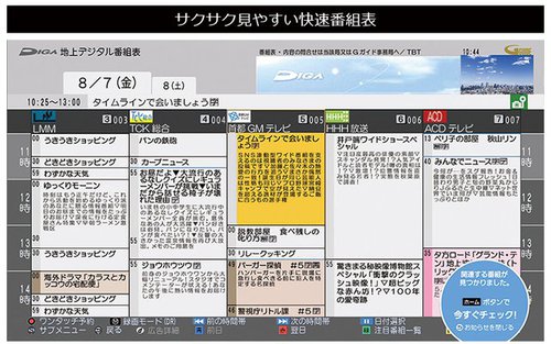 その点、新4Kディーガは抜かりない。従来型UIはリモコンで快適に操作できるよう、番組表のスクロール速度を大幅に向上させるなど“サクサク動作”を推し進めている。「快速番組表」と呼ばれるEPG画面はスクロール速度が過去の2Kモデル比約2倍、もはやモタつき・引っかかりはほとんど感じられないレベルに到達した。表示領域も拡大され文字が大きく・読みやすくなっただけでなく、一度に多くの番組情報を確認できるようになったところもポイントだ。