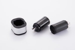 NCF Clear Lineは、空いている電源コンセントに差すことでACラインから混入したノイズの悪影響を低減するアクセサリーで、「ACオプティマイザー」と称され、静電だけでなく、制振効果も併せ持っている。筒状の本体は、ナイロンとグラスファイバーをベースとした4層構造で、ここに前述の特殊素材に加え、セラミックパウダーとカーボンパウダーも含まれている。
