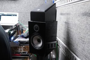 会場裏手の駐車場に停められたトレーラーが、今回のリアルタイム配信の会場だ。ライブの機材搬入車をそのまま流用したもので、デノンの協力により5.1.4chのシステムを構築。AVアンプはデノンの「AVC-X8500HA」、スピーカーは5.1chにB&Wの“700シリーズ”、ハイト用のスピーカーにはDALIの「ALTECO C1」を用いている。また、ドルビーアトモス対応サウンドバー「DENON HOME SOUND BAR 550」も用意され、手軽なシステムではどのように聴こえるかも体験できるようになっていた。