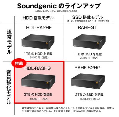 ここでは、アイ・オー・データ機器が音質面でも太鼓判を押す3TB HDDを搭載するハイグレードモデル、「HDL-RA3HG」(実売6万円程度)を使用して、アクティブスピーカー/ヘッドホンアンプ+イヤホン/アンプ+スピーカーの合計3つの環境で、クオリティチェックを行った。