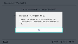 なお、こちらの方法ではBluetooth送信機がイヤホン/ヘッドホンと通信しているため、Switch本体のBluetooth機能は使われていない。そのため、Switchの画面を見ながらのペアリング設定は行えない。
