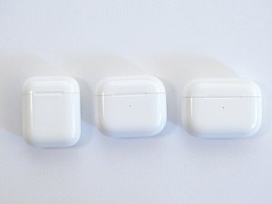 充電ケースは縦長タイプから、AirPods Proと同じ横長タイプに変わった。前面にLEDインジケーターがある。充電端子はLightning。ケースの横幅はAirPods Proよりもコンパクトだ。イヤホンの質量は第3世代の方がわずかに重く、4.28g。ちなみに第2世代は4gだ。ケースは第3世代が37.91g、第2世代が38.2g。イヤホンをケースに入れた場合の質量を足し上げると第3世代が46.47g、第2世代は46.2gになる。手に持った感覚はほぼ変わらない。
