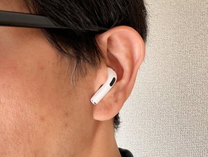 まとめると、新しいAirPodsは筐体の厚みが少し増し、ステムが若干短くなった。耳乗せスタイルのイヤホンなので装着感が安定するか少し気になっていたが、筆者の場合はものすごく相性が良かったようで、耳にぴったりフィットする。AirPodsを装着している耳を真下に向けて傾けてみたり、頭を激しく上下左右に振っても、まったくイヤホンがズレない。