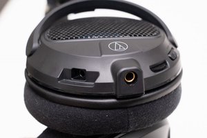 具体的には、ATH-GDL3がクッション素材、ATH-GL3がレザー調素材を採用しており、クッション素材は耳の周りがふんわりと包まれるように、レザー調素材はしっかりめに固定されるような感覚。ヘッドセット自体が軽いためか側圧はあまり感じられず、やや激しめに首を振っても装着感はほとんど損なわれない。