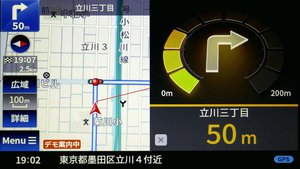 実はカーナビを使っていながら「道を間違えてしまった」という声は意外に多い。それはカーナビが案内した分岐ポイントをうまく把握することができなかったことに起因する。これまでカーナビの多くは交差点拡大図と分岐点までの距離を組み合わせることによって曲がるタイミングを伝えてきた。しかし、周辺の状況を把握しながらの案内は、肝心の目印を見落とすこともあるし、施設などの状況が変化していることもある。その意味ではむしろシンプルに分岐点をガイドする「ココデス」の方法がわかりやすいとの考え方を示す機能が「ここです案内」なのだ。