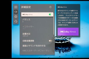 シーンによってはやや黒を引き込み過ぎるが、コントラストと明るさ(ブライトネス)調整の範囲内だ。『地獄の黙示録』で感心したもうひとつが、G1のサラウンド再生。ドルビーアトモス再生に対応し、65V型の画面サイズとバランスの良い、スケール感のある音場が楽しめる。
