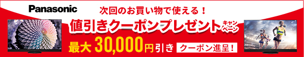 ひかりTVショッピングでの4Kビエラ「JZ2000」「JZ1000」購入者に、次回以降使える値引きクーポンを配布するキャンペーン。65型モデルの購入で3万円値引きクーポン(先着10名)、55型モデルの購入で2万円(先着20名)、48型モデルの購入で1万円分(先着30名)のクーポンをプレゼントする。