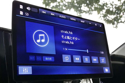 試乗車のRAV4に乗り込み、まずはF1X10BHで再生可能となるブルーレイを再生してみる。実はこのブルーレイが再生できる現行品の市販カーナビはF1X10BHのみ。ディスプレイのHD解像度(1,280×720ドット)に合わせ、ハイビジョン映像として再生される。もちろん、地デジもハイビジョン画質でそのまま再生されるので、有機ELディスプレイの採用とも相まって類のない高画質映像が楽しめるわけだ。