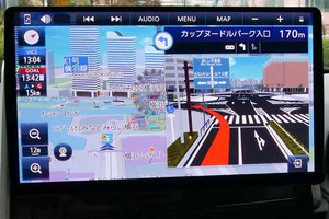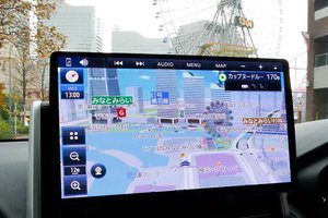 さらに2本の指で地図上をドラッグして地図の表示アングルを自由に調整でき、円弧を描くような2点ドラッグ操作で地図を回転させられる。試乗中は横浜市内を走行したが、ランドマークタワーがナビ画面上に現れたときは、そのリアルな表現力に圧倒されてしまった。こうした情報量の多い表示でも地図のスクロールはスムーズそのもの。F1X10BHはまさに新世代のカーナビゲーションを実感するに相応しい能力を発揮してくれたのだ。