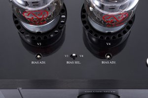 また真空管アンプとしての使い勝手も考慮され、シャーシ天面には、バイアスメーターとバイアス調整ボリュームが備えられており、メーターを確認しながらバイアス調整が可能だ。