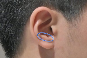 というのも、耳と接触する部分は楕円形となっていて収まりがよく、側面のくぼみ形状が耳の対珠(たいじゅ/ついじゅ)という部位にフィット。さらに、フェースプレート部分が一般的な完全ワイヤレスイヤホンよりもやや下側に配置されているため重心バランスがよく、耳からの落下を回避してくれる。