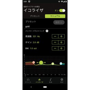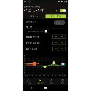 一般的な完全ワイヤレスイヤホンのアプリには、周波数帯域が固定されるグラフィックイコライザーが採用されていたり、「ロック」や「ジャズ」など、音楽ジャンルで選ぶタイプのものだったりが多い。