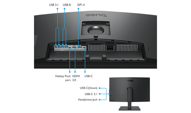 入出力インターフェイスも必要十分。背面にはUSB Type-Cポート1基に加え、HDMI 2.0とDisplay Port 1.4ポートを各1基、USB 3.2 Gen 1ポートを、A端子/ダウンストリーム用とB端子/アップストリーム用に各2基用意。側面にはデータ転送専用のUSB Type-Cポート1基とUSB 3.2 Gen 1ポート/A端子を1基備える充実ぶりだ。