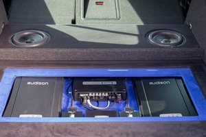 本車両のオーディオシステムは、BLAMの新フラグシップライン「Signature Multix」に属する、 3ウェイ+2基のサブウーファーの合計4ウェイ8スピーカーを搭載する。