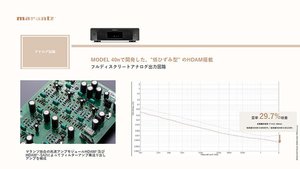 マランツならではのこだわりの回路設計は本機にも確実に受け継がれている。32bit対応の高性能DAコンバーターは電流出力型で、電流電圧変換などの重要な回路でマランツ独自の設計ノウハウを活かせるメリットが大きい。