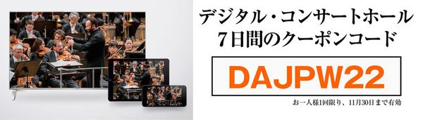 >>本文末尾に、「デジタル・コンサートホール」が7日間無料視聴できるクーポンコードが記載されています。ぜひこの機会に、実際にご自身で体験してみてください。<<