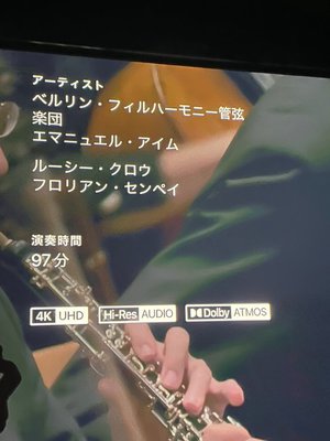 いまのところ対象となる演奏会は2018年秋以降の4シーズン分で、ごく最近アップデートされた一部の演奏会を除き、期間内のコンサート映像にはほぼ例外なくドルビーアトモスのロゴが表示されていることを確認した。ロゴが付いている演奏会については、Apple TVとHDMIでつないだAVアンプ側にも「DolbyAtmos」の表示が出て、最大7.1.4chのイマーシブ音声を再生することができる。