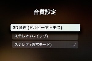 ハイレゾのステレオ音声は高解像度だが、左右のスピーカーを中心に音が前に張り出す印象が強い。テレビやスクリーンとスピーカーの間の位置関係を工夫すれば画面との一体感がある程度は得られるが、どちらかというと音声だけで完結したバランスになっている。そのため、画面を消して音だけ再生してもCDのようなハイファイ再生が楽しめる。