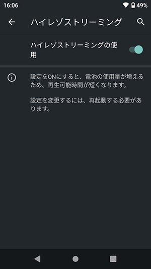 しかも、だ。そう感激していたところ、コルグの中の人から「ん?そのDAPだと設定変更しないとブラウザではハイレゾ再生できなかったかも」との指摘が。何とWM1ZM2の場合、「ハイレゾストリーミングを有効にする」的な設定をオンにしないと、ブラウザでの配信視聴での音声は非ハイレゾのロスレスにダウンコンバートされてしまうという。