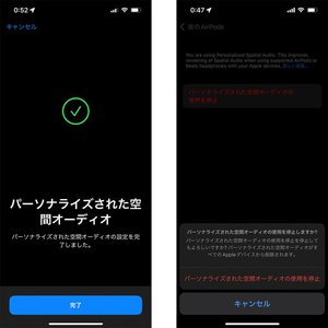 スムーズにキャプチャーができれば、画像解析処理も含めて、プロファイルの作成には1分もかからないだろう。パーソナライズされた空間オーディオのプロファイルはユーザーのApple IDに関連づけて保存され、機能に対応するAirPods、またはBeatsのイヤホン・ヘッドホンを接続して使う時に自動で有効化される。また、プロファイルの作成は何度もやり直せる。