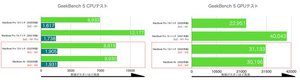 ベンチマーク結果を見ると、M1とM2は、1CPUコア自体の性能アップの幅は小さいものの、全体の効率アップやメモリーへのアクセススピード上昇から、それなりに性能がアップしている。