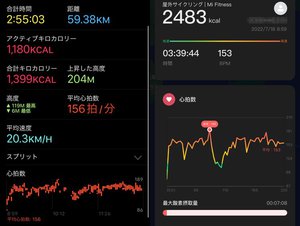 なお消費カロリーについては、Apple Watchは1,399kcal、Xiaomiは2,483kcalと大きな差があったものの、同時に走らせていたStravaアプリでは891kcalという結果だった。今回の検証では数値の乖離が激しく、どれも目安程度にしかならなかった。