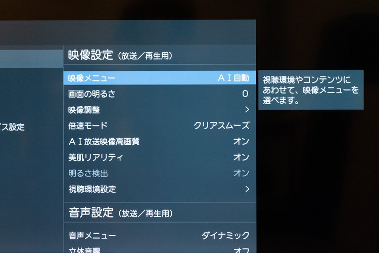 ノイズが少ないだけでなく、画面全体が明るく立体感もあり、日本人エンジニアのチューニングが存分に発揮されているようだ。なお、もし明るさ面で物足りない方は画質モード「ダイナミック」を活用してみてほしい。また視野角については、上述の通り55V型モデル以外はVAパネルではあるが、角度を付けて視聴しても画面全体がやや明るくなる程度だった。