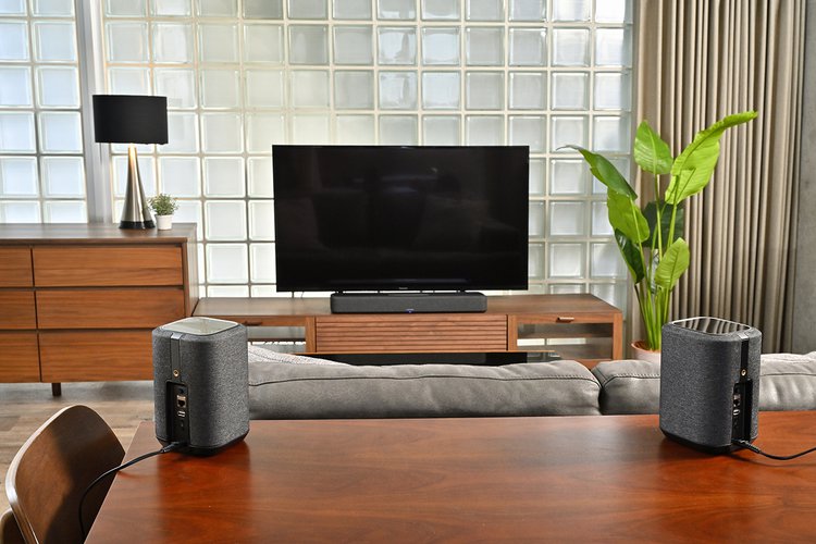 そんな150だが、デノンのサウンバー「DENON HOME SOUND BAR 550」と組み合わせると、リアスピーカーとして使える機能を備えている。そのため150が2本あれば、リアルサラウンドを実現できるのだ。実際に試聴してみたが、バーチャルではない包み込まれ感はまさに「リアル」で、映画やドラマも没入感が大幅にアップする。また150は小型ながらクオリティが高いので、リア成分に音が多く収録された音楽作品も堂々と表現。この使い方は大いにアリだ。