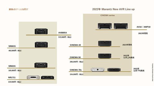 このたびマランツから、ファン待望の新AVアンプ4機種が発表された。その名も「CINEMAシリーズ」。デザインを一新し、モデル名も上から「AV10」「AMP10」、「CINEMA 40」、「CINEMA 50」、「CINEMA 70s」とシンプルなものになった。