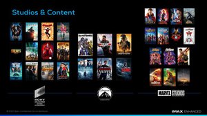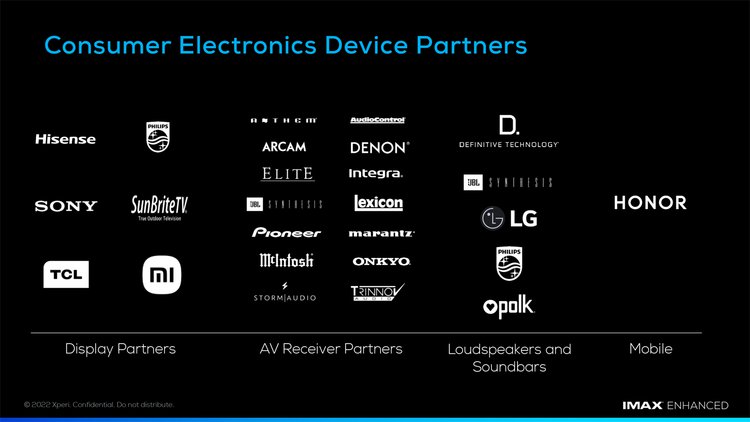 まずはコンテンツから。UHD BDと配信で用意され、どちらもIMAX Enhancedが明示される。IMAX Enhancedはホーム・エンターテイメント・プログラムであって、技術規格やフォーマットではないので、互換性などを難しく考えなくても問題ない。先述の通り、高画質で大画面に適するという認識で良いだろう。参加スタジオおよびコンテンツ、配信事業者については、下記スライドの通りだ。