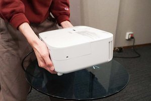 エプソンのプロジェクター製品を長らく見て来た筆者としては、まず、デザインの進化に感心した。会議室によるあるビジネスプロジェクター風ではなく、スクエアでモダンな佇まいに。これならリビングに設置しても「カッコイイ」と思えるのではないだろうか。
