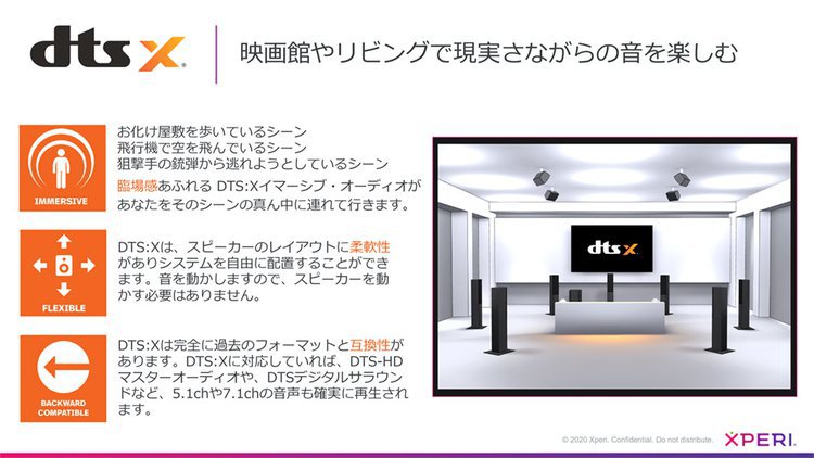 2017年に米Xperiの傘下に入り2020年からは、DTSは得意としてきたオーディオだけでなく、イメージングやセンシングの技術を組み合わせたデジタルソリューションの総合テクノロジーブランドとして新たなスタートを切った。DTSというブランドネームには新たに「Dedicated To Sensational(ひたむきに感動を追求する)」というポリシーも加わった。