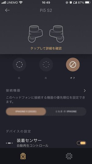 アプリは従来のものに代えて「Bowers & Wilkins Music」アプリを使用する形に。こちらでノイキャンとパススルーのレベル調整、バッテリー残量詳細の確認などを行える。なおノイキャン性能も従来通り、現代ハイエンド機として普通に十分なレベルを確保。「音質重視モデルなのでノイキャン強度は控えめです」的な言い訳を必要としない性能だ。