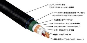 これを受けて新たに開発されたオス/メスのXLRプラグが「CF-601M NCF(R)」/「CF-602F NCF(R)」で、「Lineflux NCF(XLR)」はこのプラグを採用した最新のXLRケーブルである。ケーブル本体に変更はないが、シースにナノセラミック/カーボンパウダーを調合していることにも注目したい。