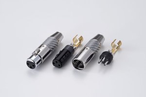 またオス側のピン端子は、純銅素材のα導体ロジウムメッキのワンピース構造とし、中心に耐熱性NCF液晶ポリマー樹脂が充填されている。メス側も同様のワンピース構造に、その外側のハウジングはクロームメッキ真鍮のスタンピングとしている。また内部の制振弾性リードは、先に触れた特殊NCF共振減衰素材である。