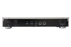 筐体は鋼とステンレスをアルミ外装で覆った二重構造とし、外来電磁波や振動を低減させている。これはデジタルデータを扱うSACDプレーヤーとまったく同じ考えだ。アンフェノール社製コネクタを採用したUSB2.0入力を1系統、USB3.0を4系統装備し、USB-DAC、外部ストレージ、バックアップ用に使い分けも可能にした。一般的なLAN端子はノイトリック製で2系統。両端子とも堅牢で確実な嵌合を実現し、高音質化を図った。