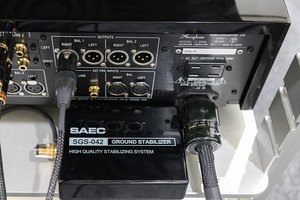 バーチャルだから接地の手間もなく、仮想アース本体とコンポをアースケーブルでつなぐだけ。オーディオ機器よりも安定したところ、つまり「仮想アース」につなぐことで基準グランド電位が安定し、ノイズ対策にもなって音質改善につながるというものだ。今回は、アースケーブルは同じくサエクのPC-Triple C導体を採用した「SE-400」を活用している。