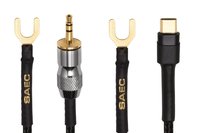 最下流のスピーカーは、エネルギーの大きな電気信号を扱うもの。この試聴では、SGS-042を2台用意し、SGS-042とモニターオーディオのPL200のマイナス端子側とそれぞれ接続。なお、アースケーブルは同じく「SE-400」のYラグ - バナナのものを使用している。